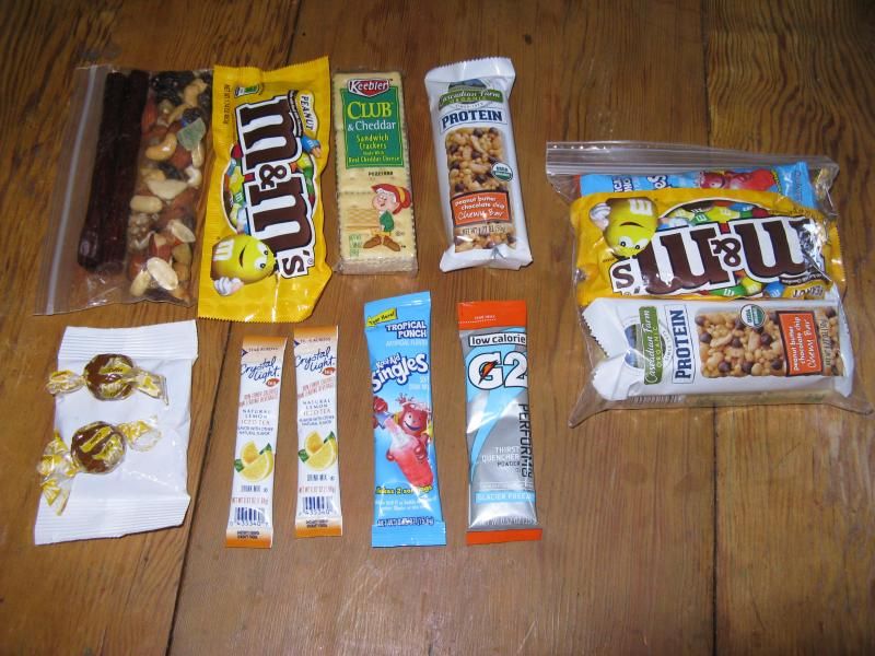 Lots of good snack ideas listed here already. Whole wheat pita breads are another good carb option. We eat a lot of Lara bars, KIND bars and Costco fruit and nut medley. Trying to eat fewer heavily processed foods, but I have a weakness for Reese's peanut butter cups and Luke loves almond joy so a few of each always make it into our packs too.