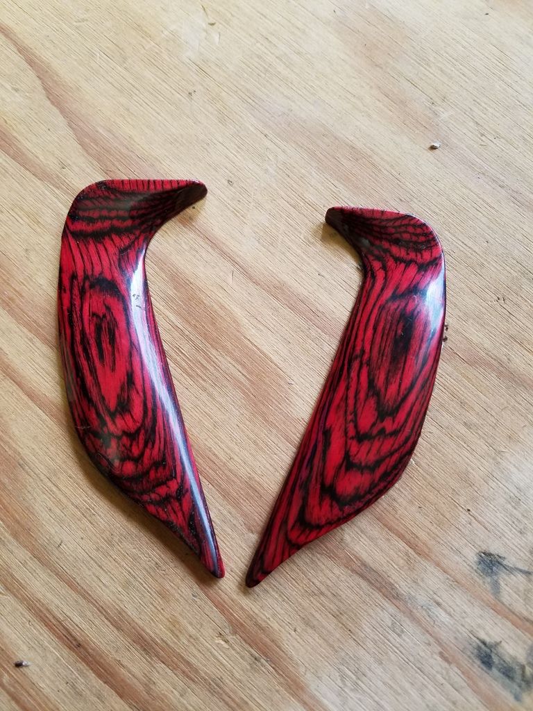 Took these off of a Bowtech Destroyer 350 before sending it away. Red and black. Were very comfortable and helped to keep the proper grip on my bow while shooting. Good condition with a bit of residual adhesive on the back. I used Gorilla glue to adhere them and it worked great.