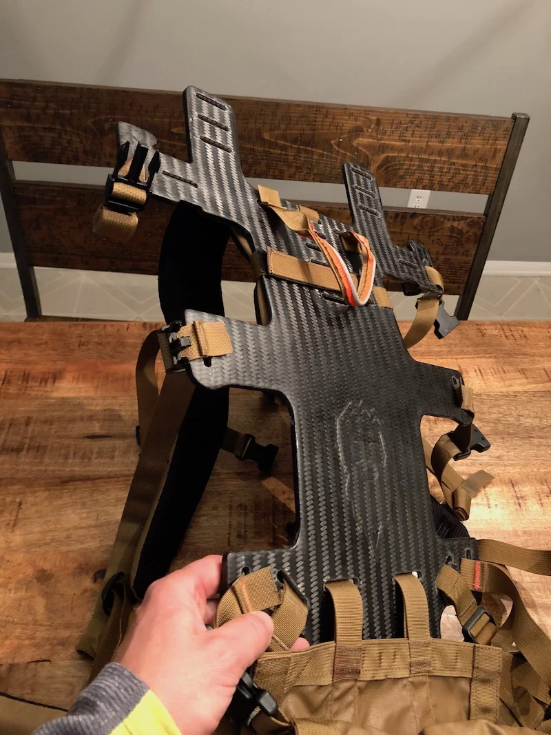 The Pannier Load Carrier is a neat feature. It allows the user to carry the meat between the frame and the bag. This is an integrated, always-ready-to-use system. It allows the bag to haul while keeping gear clean inside the bag, and keeping the weight of the meat close to the user’s center of gravity. This improves balance and additional comfort at the contact points on the shoulders and hips. We used this configuration on multiple loads of Wisconsin whitetail and Wyoming elk (up to 120lbs) and were very happy to see it functioned as it was designed to.