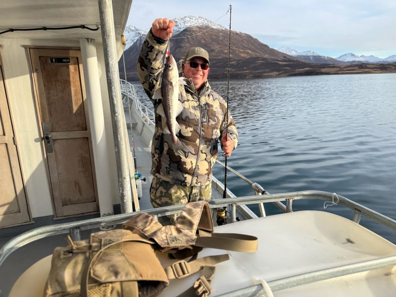 Our adventure began with Island Air flying us to meet the boat on a pair of Beavers. Flying on these amazing machines is always one of my favorite parts of an Alaskan hunt. The weather was good and we saw some incredible scenery. Once we reached the Spirit we got our gear squared away and did some fishing. We caught several pollock and Pacific cod that evening while getting to know Ross and his deck hand Jim. After the sun went down, Ross fed us the first of many excellent meals.