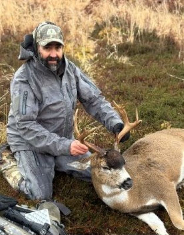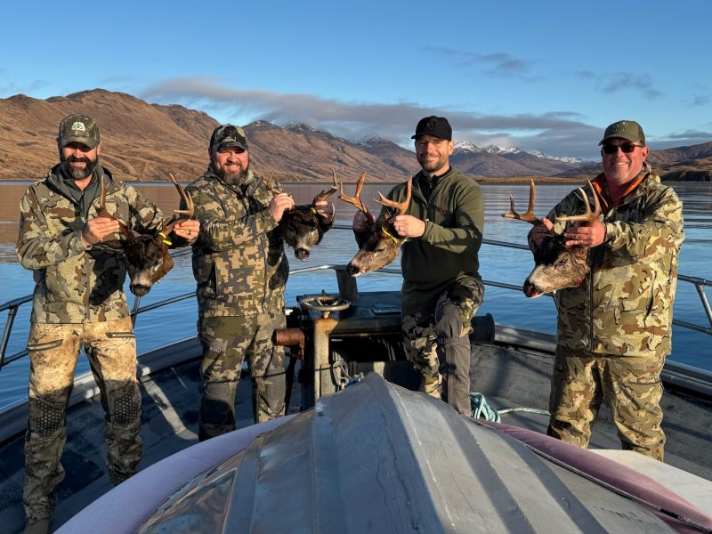 On our second day, the weather was colder, rainy, and very windy. Both groups returned to the areas we’d hunted the day before, but with quite different results. All the deer that were rutting and feeding on the first day were hunkered down in the brush. Steve and I put in a long day trying to glass and still-hunt the more protected areas. We hunted all the way up the drainage we’d hunted the day before, across a saddle, and circled back to the beach. We saw only a couple does all day. Team Jeff had better luck. They did not see many deer but saw a great buck at the bottom of a hill. Jeff W. lined up a 280-yard shot off his tripod with his 7mm PRC and the buck dropped. After a long wet hike, they made it back to the shore just before dark.