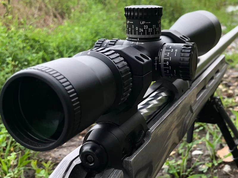 The Nikon Black series of scopes offer exposed turrets with a first focal plane and second focal plane series, each with powers in 4-16 and 6-24 with 50mm objectives. There are illuminated and non-illuminated versions depending on the model with MRAD and MOA options.