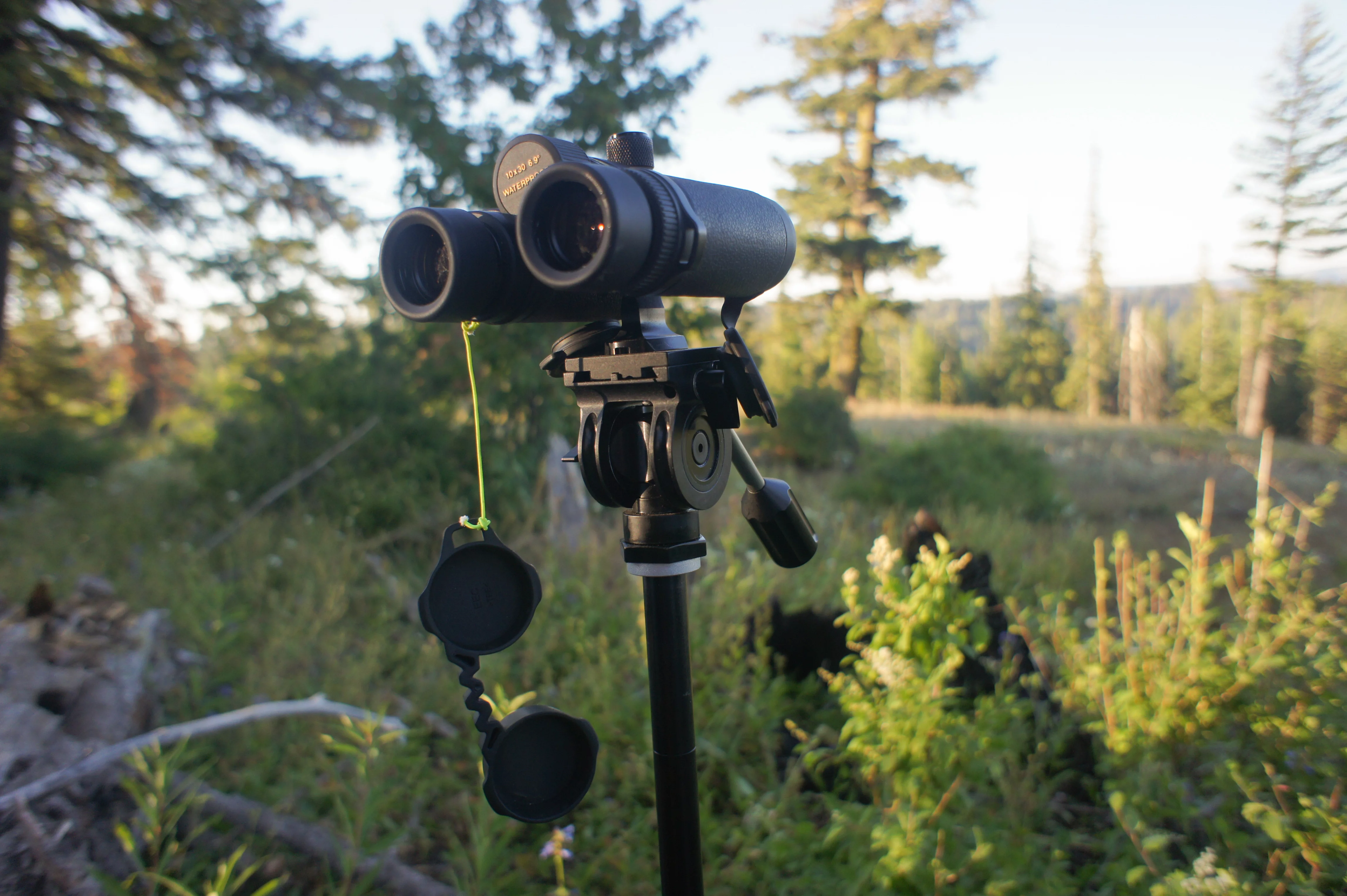 I often set binos onto my tripod, so WHY WON’T SWAROVSKI PUT FREAKING THREADS ON ALL THEIR BINOS?! Okay, now that I got that out of the way, having threads on the Nikons made setting them on my tripod as easy as “lefty-loosey, righty tighty.” I currently use the Outdoorsmans’ Binocular Adapter with the Nikons. I spoke on the phone with an Outdoorsmans rep, and he said Outdoorsmans doesn’t offer a stud for the CLs. Since the Outdoorsmans’ Bino Hand would be too large for the CL’s barrel, I went with a universal adapter I bought a while ago off of Amazon.