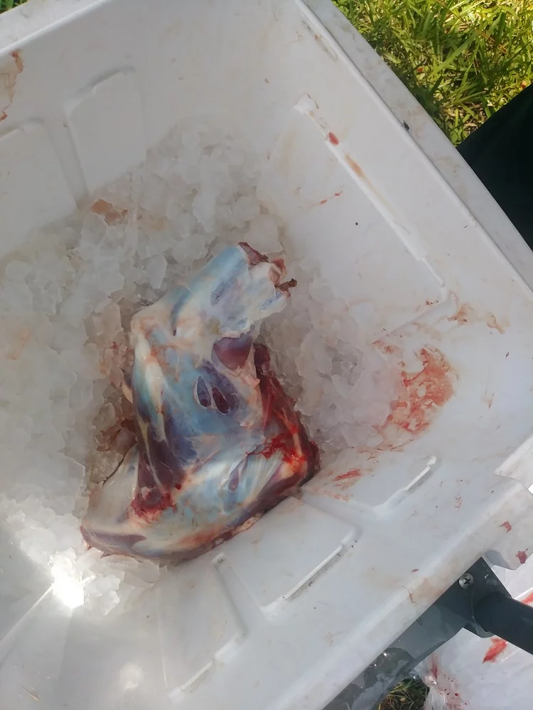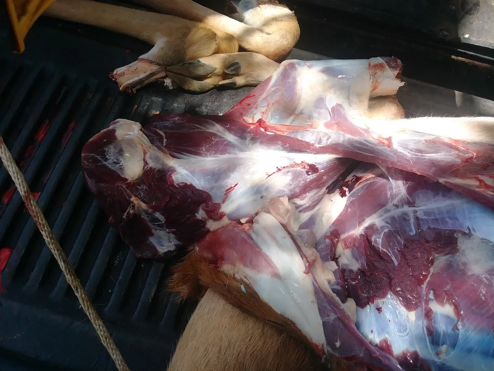 - Use the hide as a barrier between the ground and the meat if you don’t have a plastic sheet.