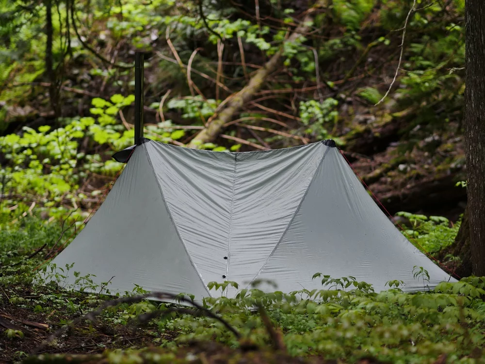 Seek Outside released the Silex single person shelter in 2019 and announced the small Cub U-turn stove in 2020. The shelter pitches with two trekking poles (47 – 55 inches) and four stakes into a slight diamond shape. The dimensions are approximately 7 ft. by 7 ft., equating to a 49 square ft. footprint and a height of 50 in. at the center ridge. The body is made of 30D Cordura silnylon fabric and has two entrances with two vestibules for gear storage. Order Silex here.