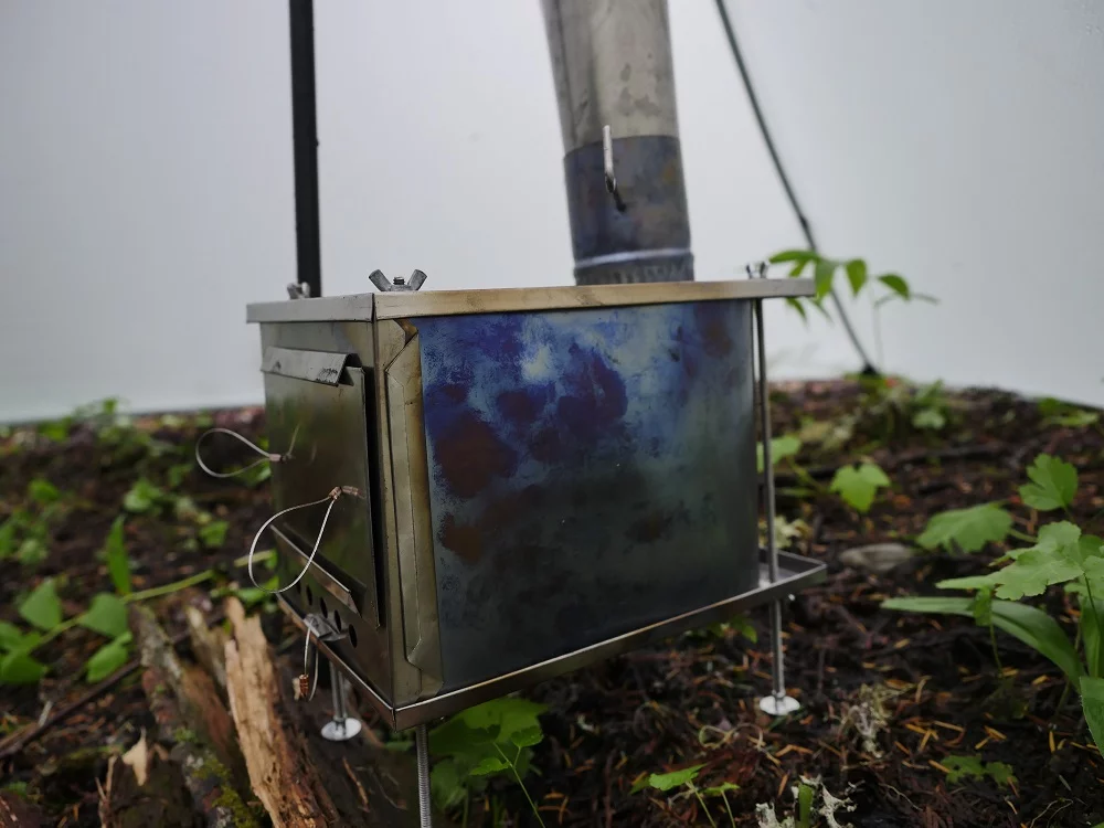 The small Cub stove produces enough heat to quickly warm the interior of the shelter and make it extremely comfortable on cold days. The small firebox requires steady feeding and won’t solely burn large pieces of wood. A bed of coals can be built up over time in the bottom that will maintain some heat for drying of clothes. But don’t expect it to last more than an hour.