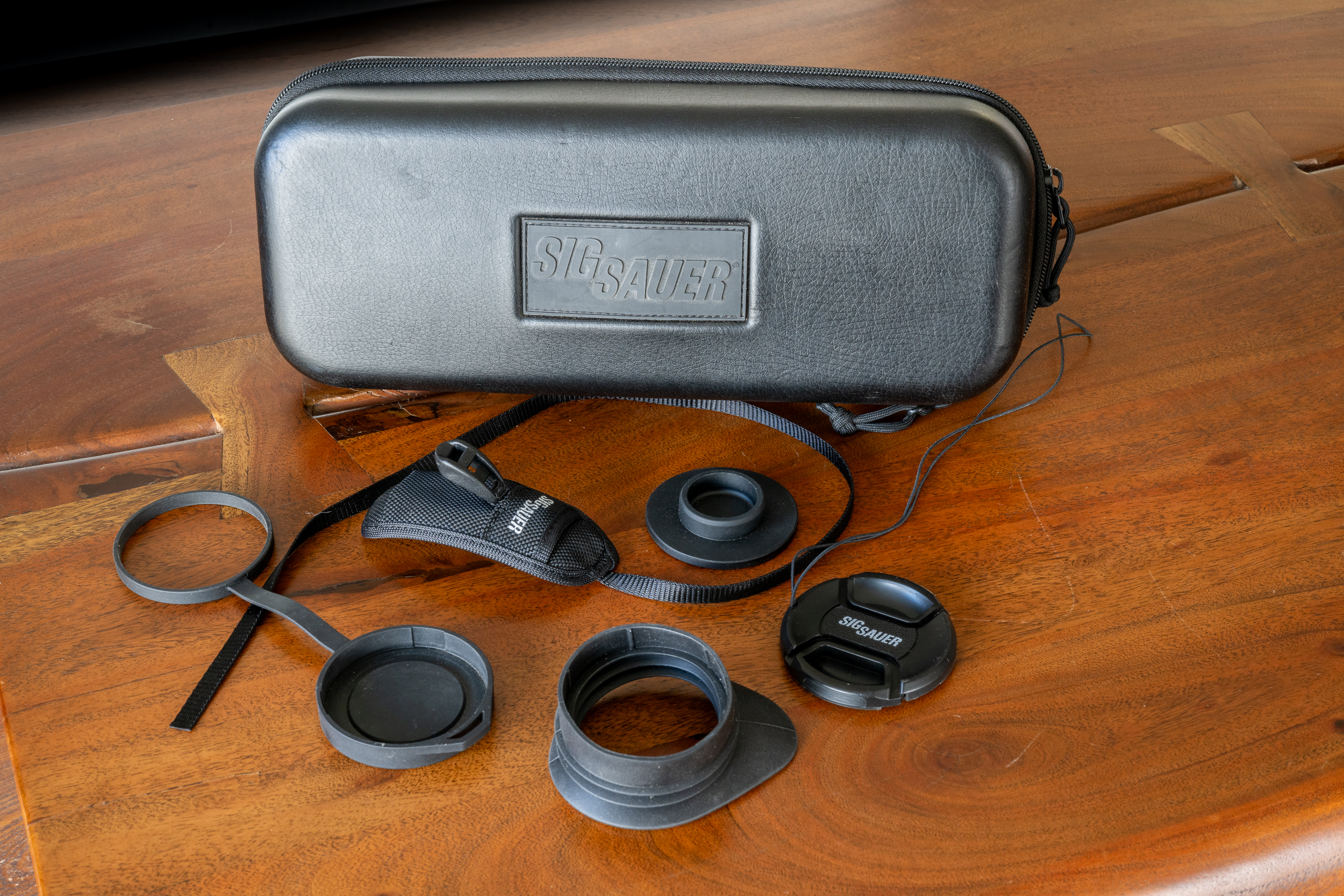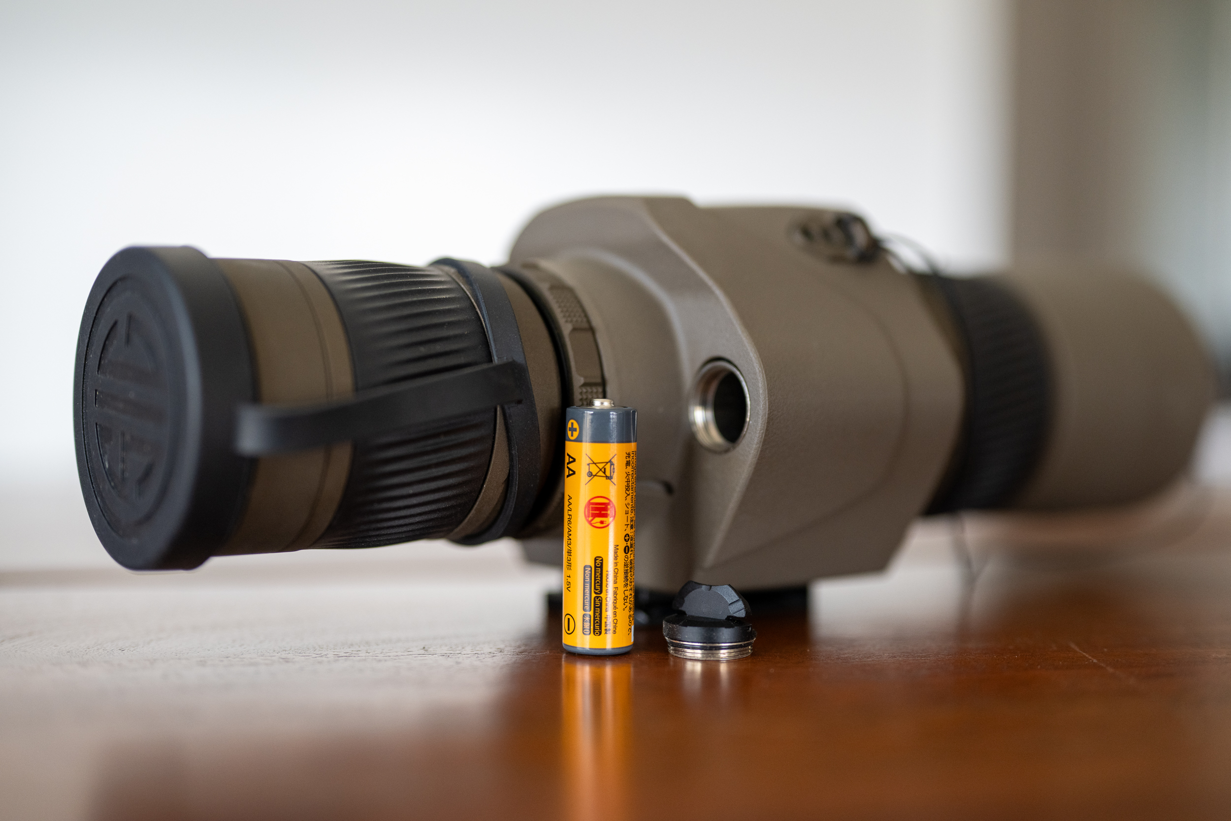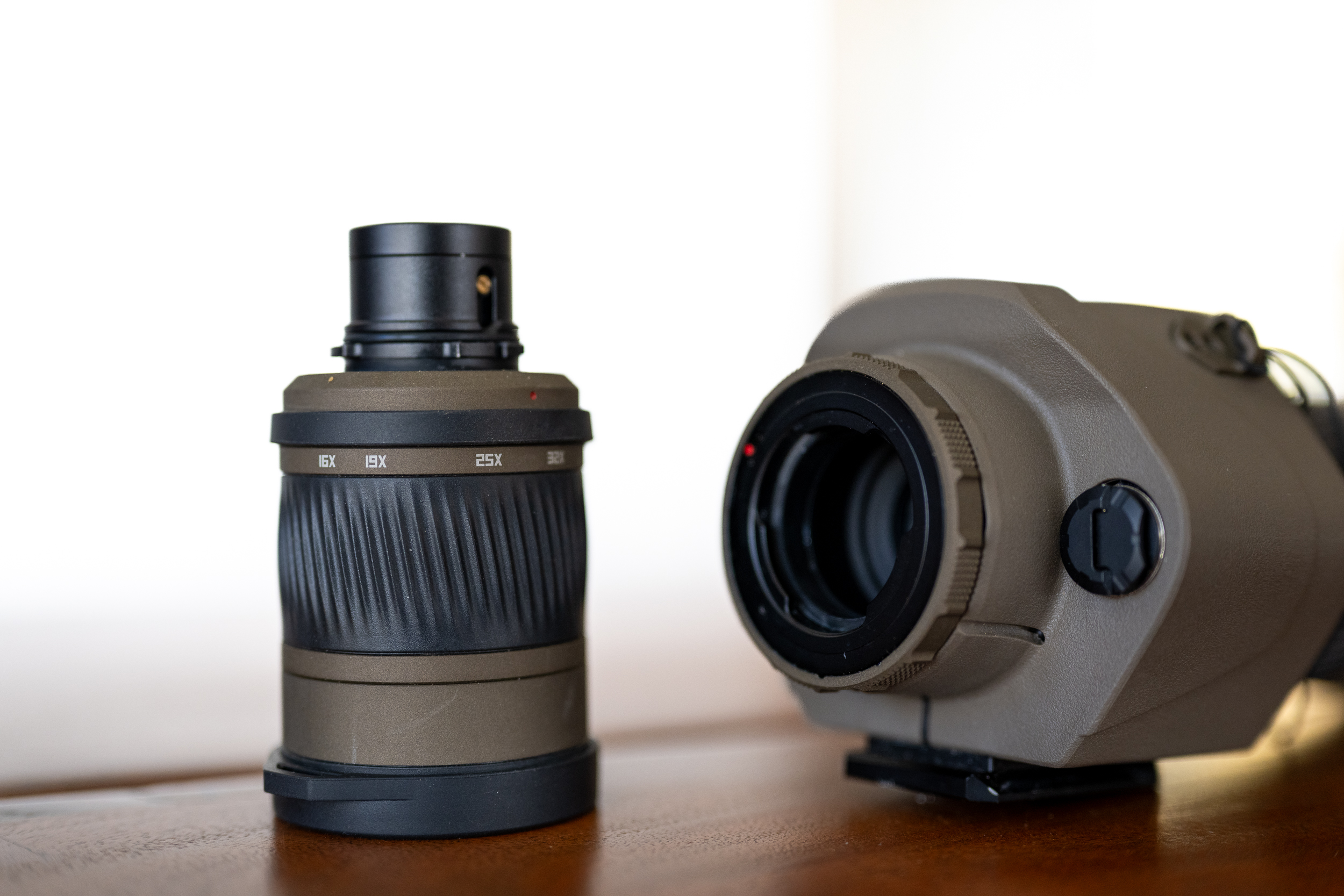 The scope comes with a screw in sunshade (which was missing from my test unit), lens caps, extended rubber eyepiece shade, hand strap, replaceable strap mounts, and semi-rigid case. Tripod attachment comes from the attached Arca-Swiss rail, but also accommodates other plate styles with a standard 1/4-20 socket. Integrated Arca-Swiss compatibility should be industry-wide, in my opinion.