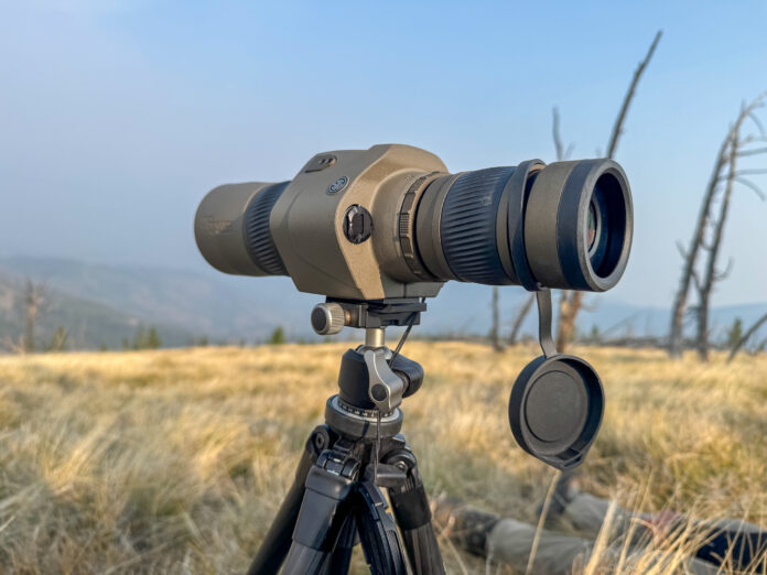 A spotting scope is a critical tool for the western hunter. A quality spotter serves many purposes including general hunting, scouting, range work, long range practice, trophy evaluation and many others. The advantages are obvious, where the spotting scope’s additional magnification picks up where the lower magnification binocular leaves off. Many times I have saved myself the effort of an extended stalk because the spotting scope allowed me to see an animal wasn’t the quality I was looking for. The disadvantages have always been the size and weight costs. Not just in the optic itself, but in the tripod and head to stabilize the high magnification view.